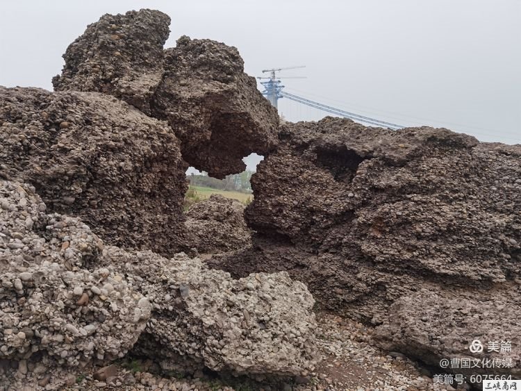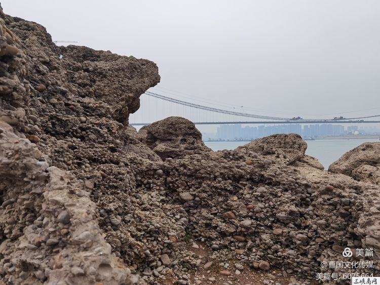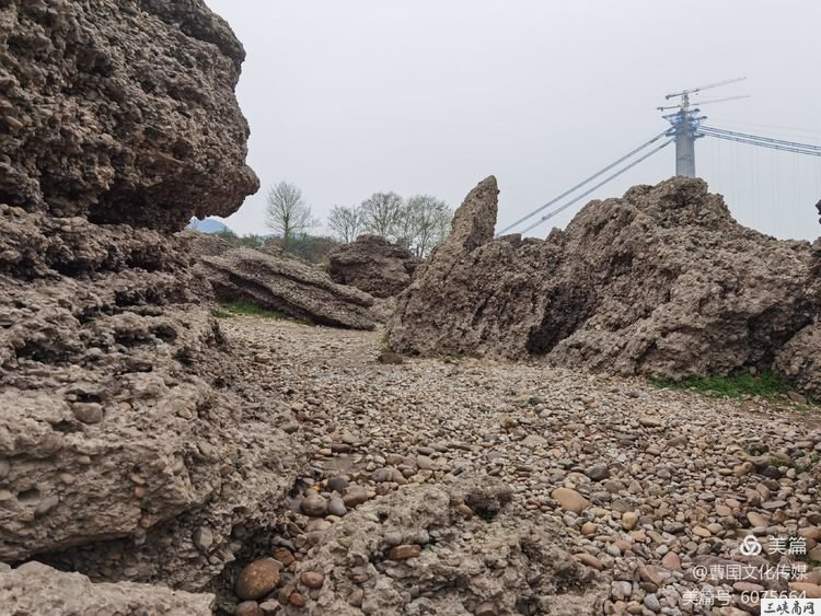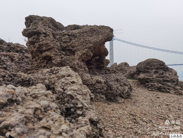 我们从夷陵大桥江南下桥,沿江边一直下游,在正在建设的荆门山大桥下方,开车30多分钟到达,奇奇怪怪的河边一组石群出现在我们眼前。