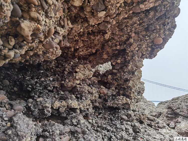 据资料记载:位于艾家镇罗镜滩下游琵琶垴的砂砾岩是个地质遗迹。早在上世纪六十年代就被地质部门命名为“罗镜滩组",系宜昌境内典型的白垩纪地质遗存,距今已有几千万年的历史。罗镜滩组为灰红、紫红、灰色厚层块状砾岩。每当雨后或浪花拍击砾岩,在阳光的照耀下,砾岩会光彩夺目,将把你引到远古时代……