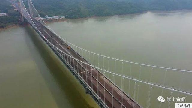 宜都长江大桥,是位于中国湖北省宜昌市的一座公路悬索桥,跨越长江,连接北岸的枝江市白洋镇和南岸的宜都市陆城街道,是呼北高速公路宜昌至张家界段的控制性工程,也是湖北省“753”骨架公路网中规划“纵6”的重要组成部分,大桥北接保康至宜昌高速公路,南连宜昌至张家界高速公路湖南段。大桥全长2,160米,按双向六车道高速公路标准建设,设计行车速度100公里/小时,主桥采用主跨1000米双塔钢桁梁悬索桥设计大桥项目估算总投资37.73亿元人民币,计划建设工期为48个月。