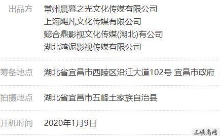 影片已在五峰县境内苏家河、红旗坪和桥料三个主场地取景拍摄。并已于2019年12月18日在宜昌桃花岭举行了启动仪式及新闻发布会;2020年1月9日开机拍摄。计划于2020年4月底前完成电影摄制工作,10月全国上映。
